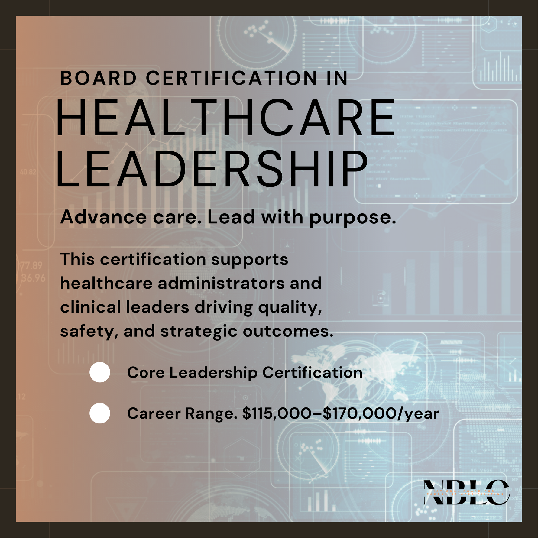 The Board-Certification in Healthcare Leadership (BCHL) is designed for clinical and non-clinical professionals who lead in complex, regulated healthcare environments. This credential empowers you to govern patient safety, regulatory compliance, workforce strategy, and organizational performance — all while driving ethical, patient-centered care.