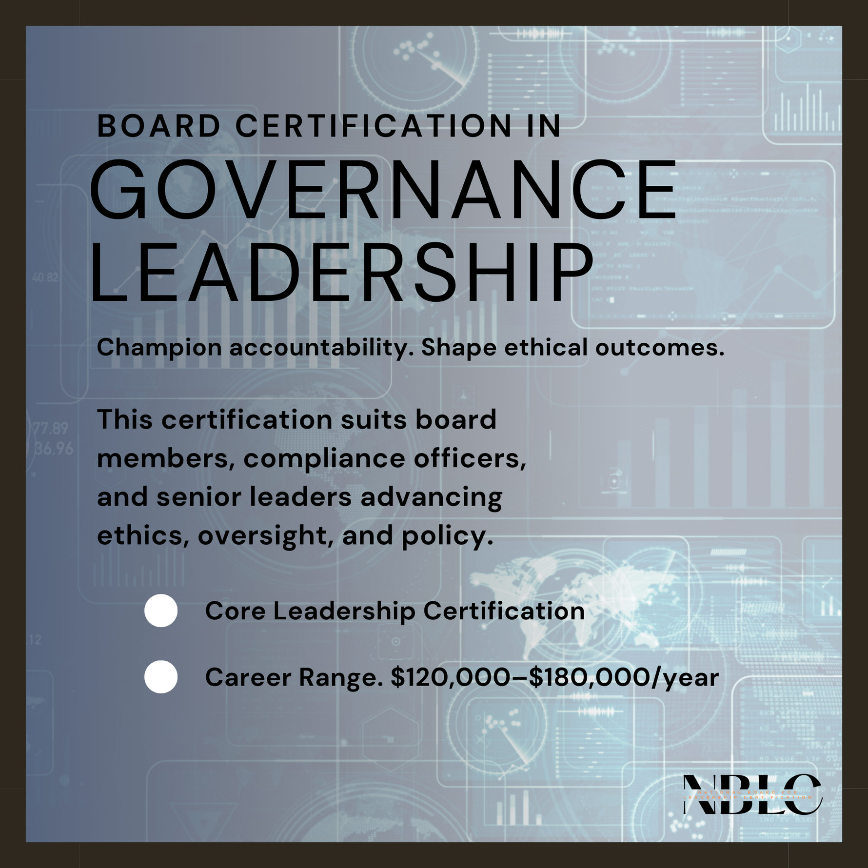 The Board-Certification in Governance Leadership (BCGL) is designed for professionals who serve on or work closely with boards, governance bodies, and oversight roles. This certification equips you to lead with transparency, uphold fiduciary responsibilities, and align organizational governance with ethics, strategy, and stakeholder trust.